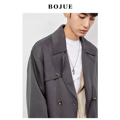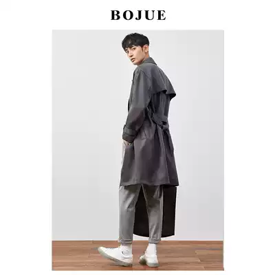 Medium and long version of men's trench trench coat 2019 autumn new British and Korean version of the trend loose tencel spring and autumn jacket