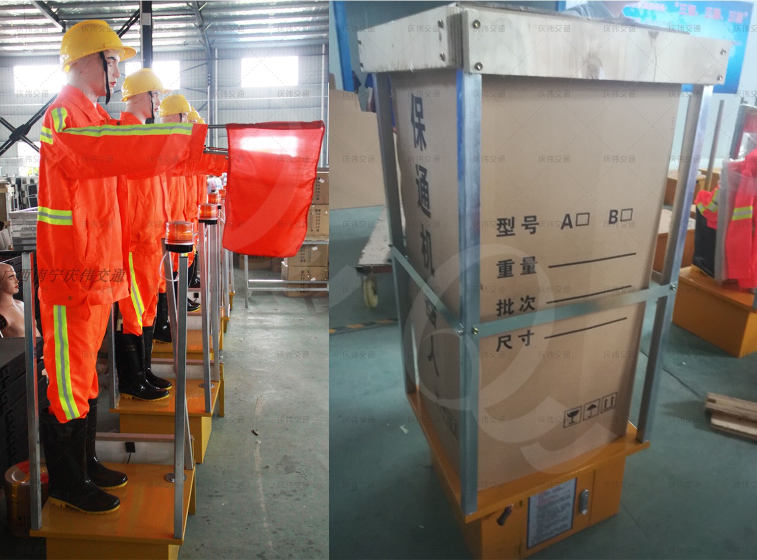 Traffic command dummy solar simulation commander high-speed flag-waving robot construction safety officer pass-through dummy