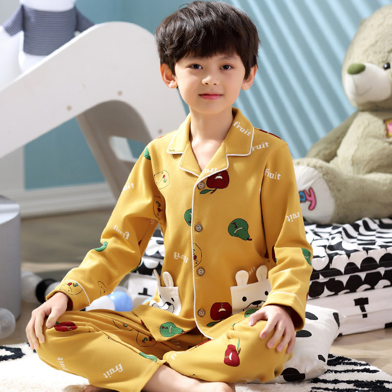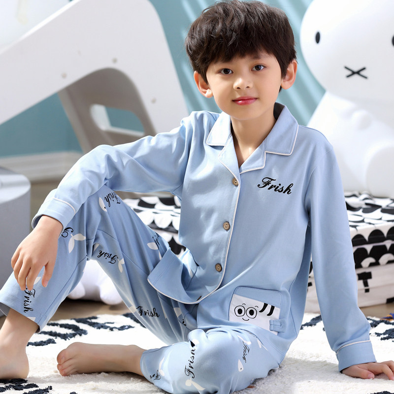 Children's Pajamas Boy Pure Cotton Long Sleeve Spring Autumn Boy CUHK Boy Toddler Baby Home Conserved Autumn Suit Cardiovert