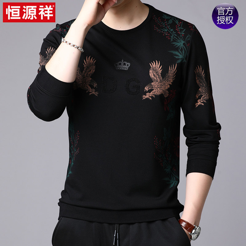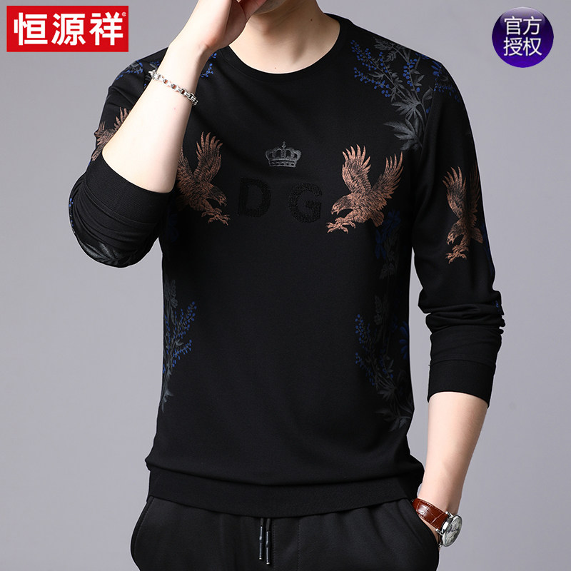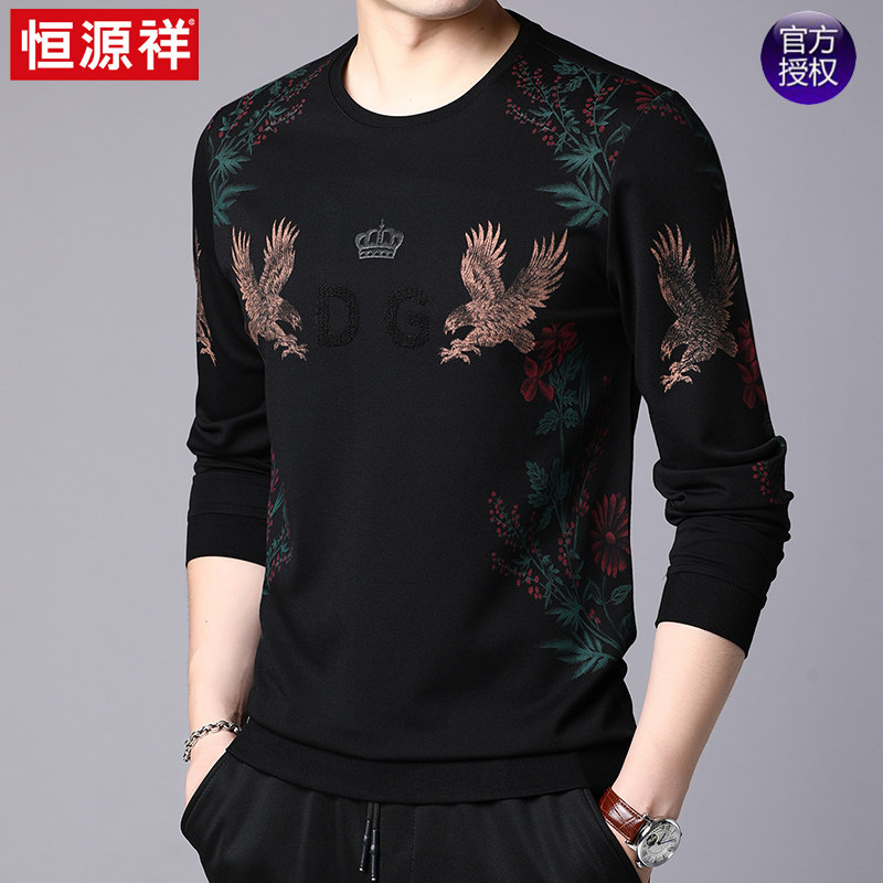 Hengyuan Xiangqiu Winter New Men's Long sleeves T-shirt Weater round neckline jacket Head men's undershirt casual printed blouses