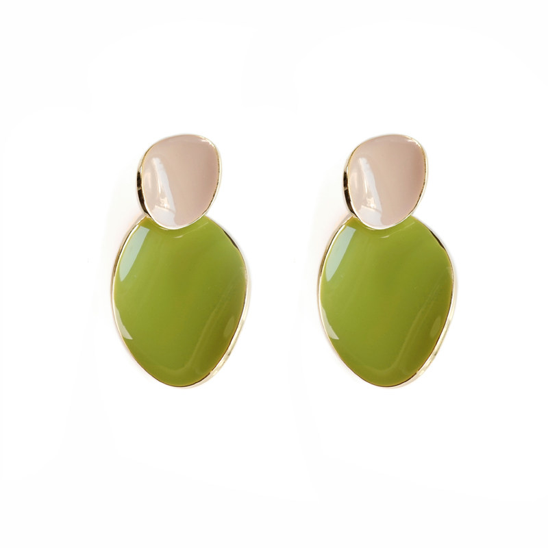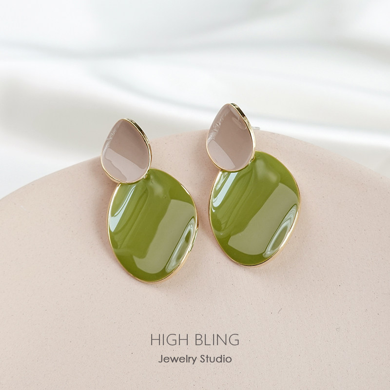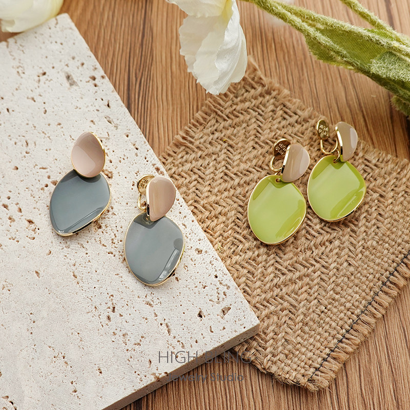 2021 new trendy avocado Morandi hit color S925 silver needle earrings women look thin and painless mosquito coil ear clip