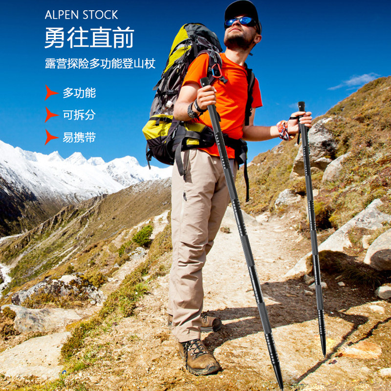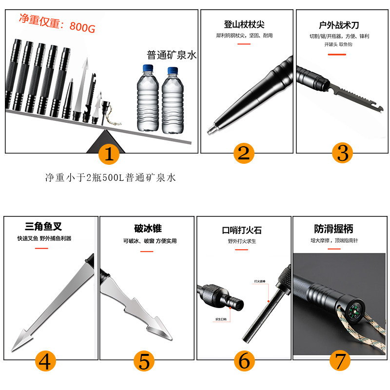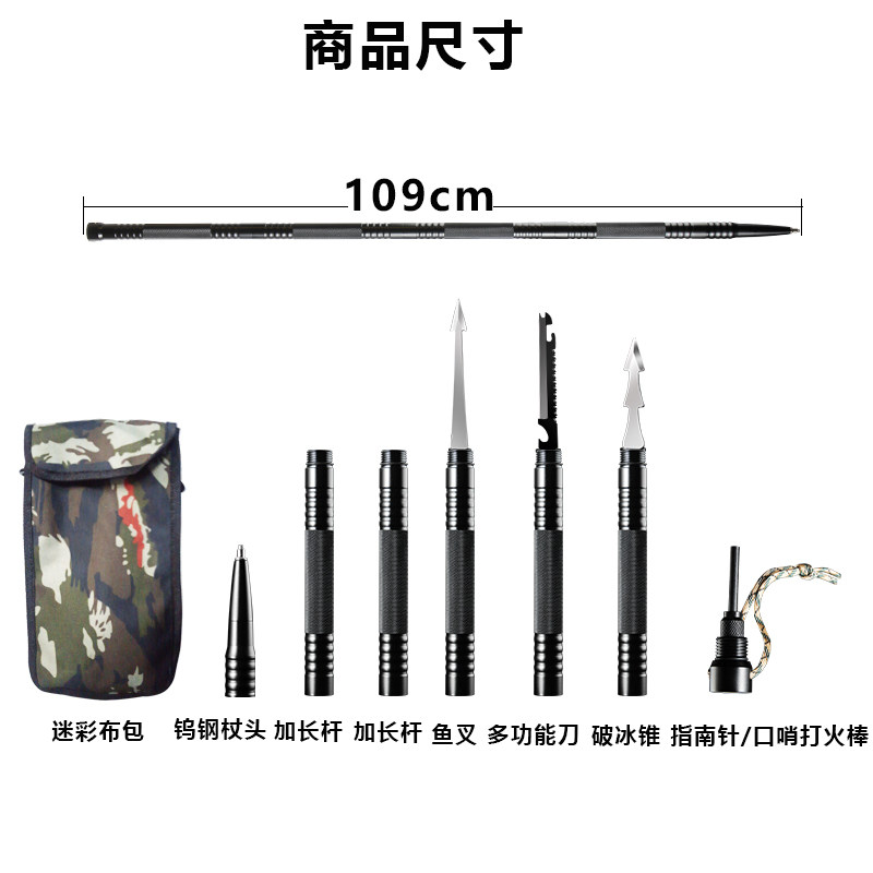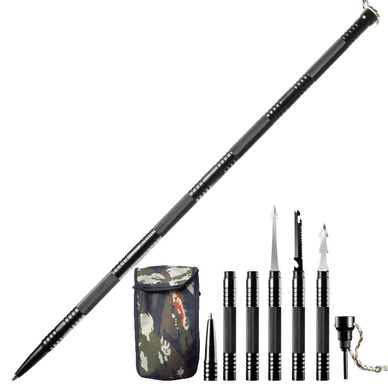 Portable multifunctional mountaineering stick outdoor anti-body tactical stick field survival knife cane hiking mountaineering equipment