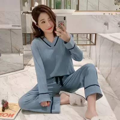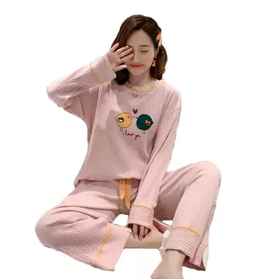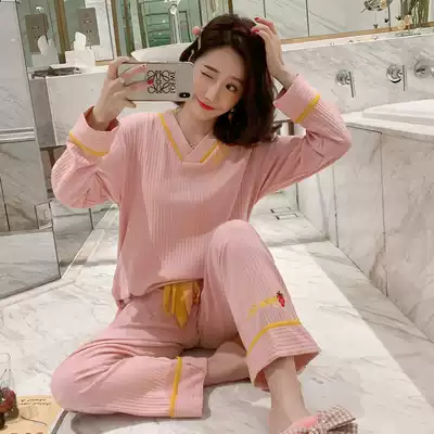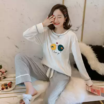 2019 New pajamas female spring and autumn cotton long sleeve Korean fresh students cute sweet loose home clothes autumn and winter