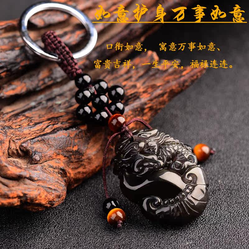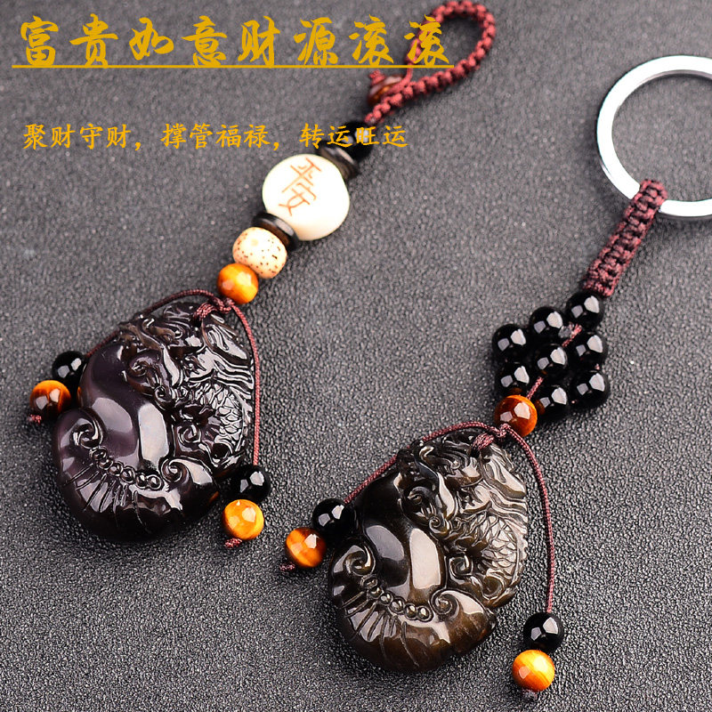 The obsidian PI xiu zhaocai PI xiu car with hand-woven rope key ring female creative high-grade key pendant male