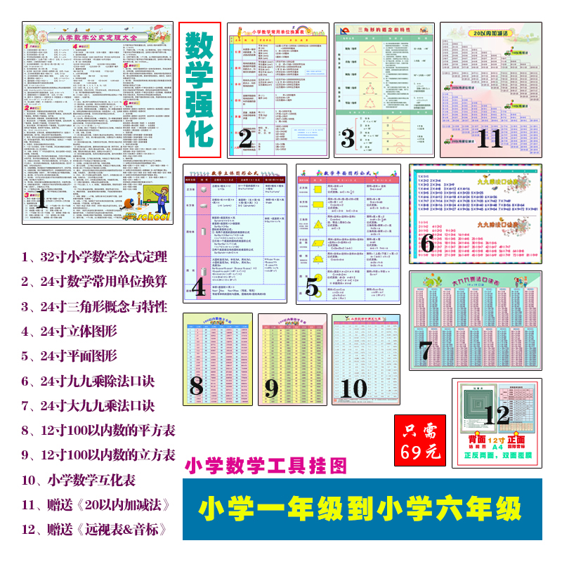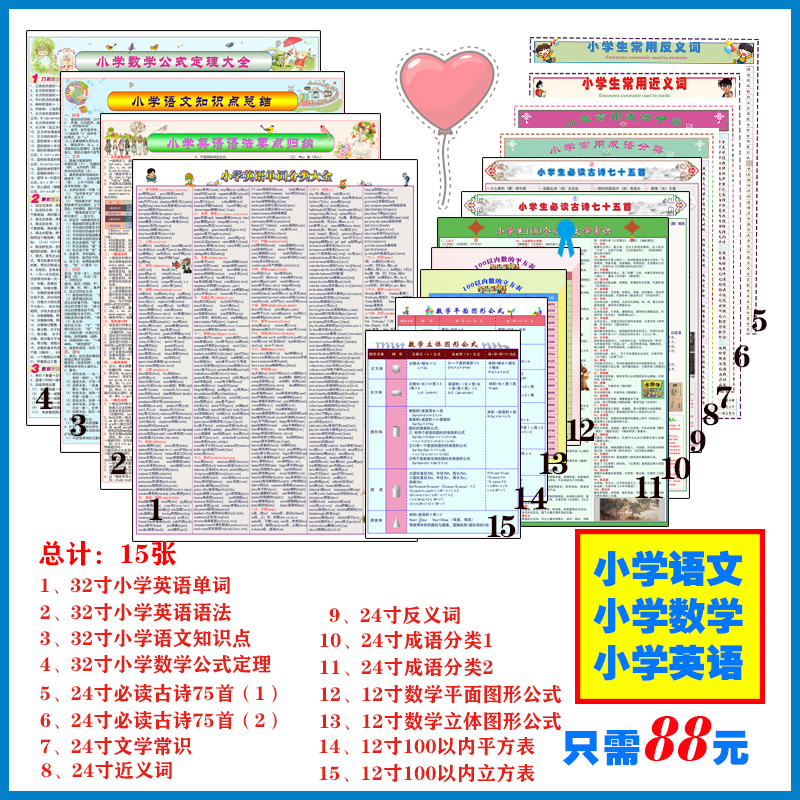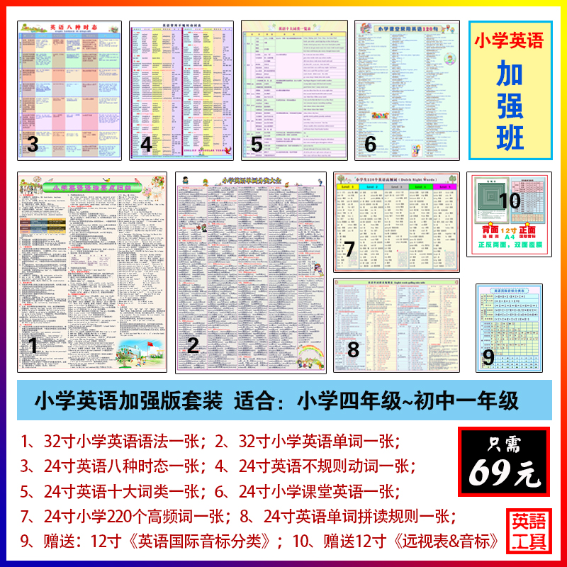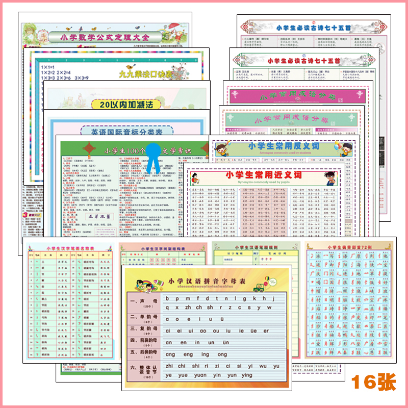 Primary school learning wall chart set 1-6 grades primary school senior set 3-6 grade primary school English intensive set primary school mathematics intensive set primary school learning wall chart set upgrade version
