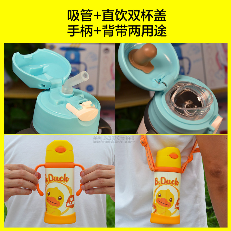 (clear bin ex-gratia) Tonmaz double cup lid handle cuddling bag stainless steel straw cup
