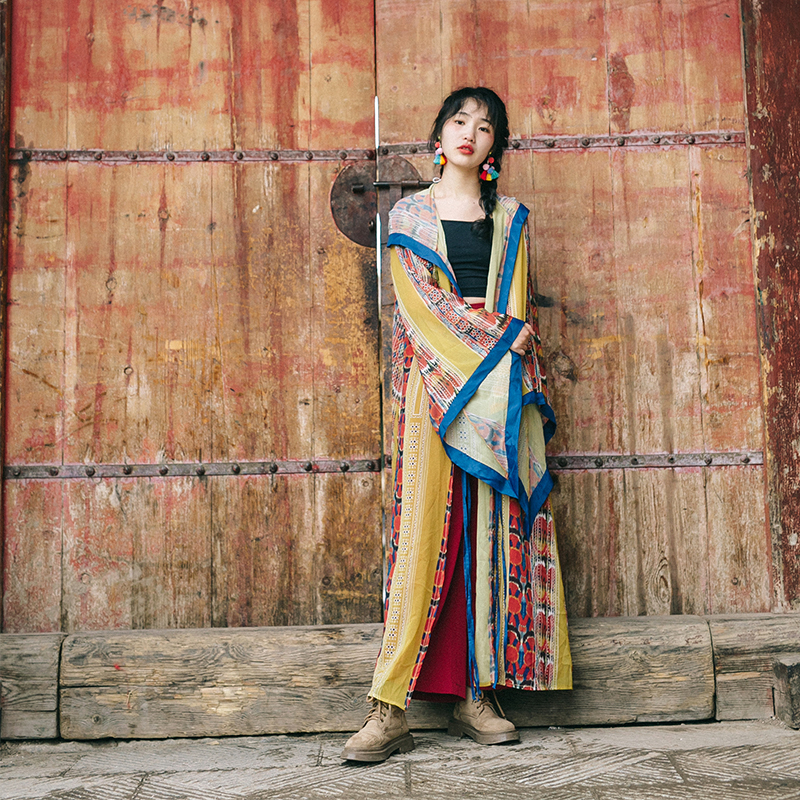 Tibet Qinghai Lake Tourism Ethnic Wind Cape Fairy's sunscreen cardiovert jacket Woman's slim sunscreen In the middle of a sunscreen