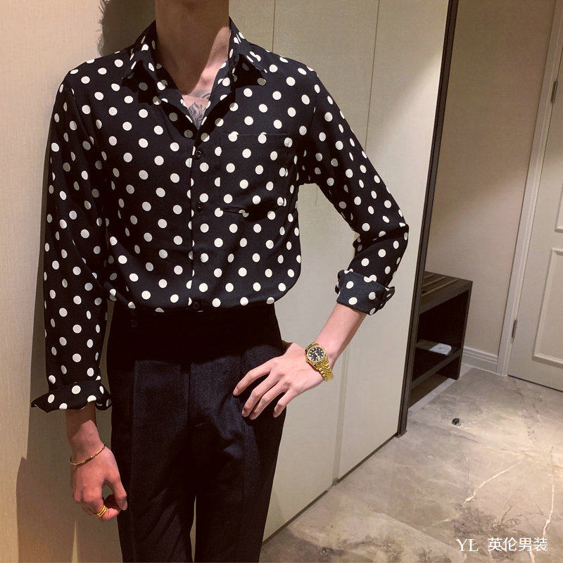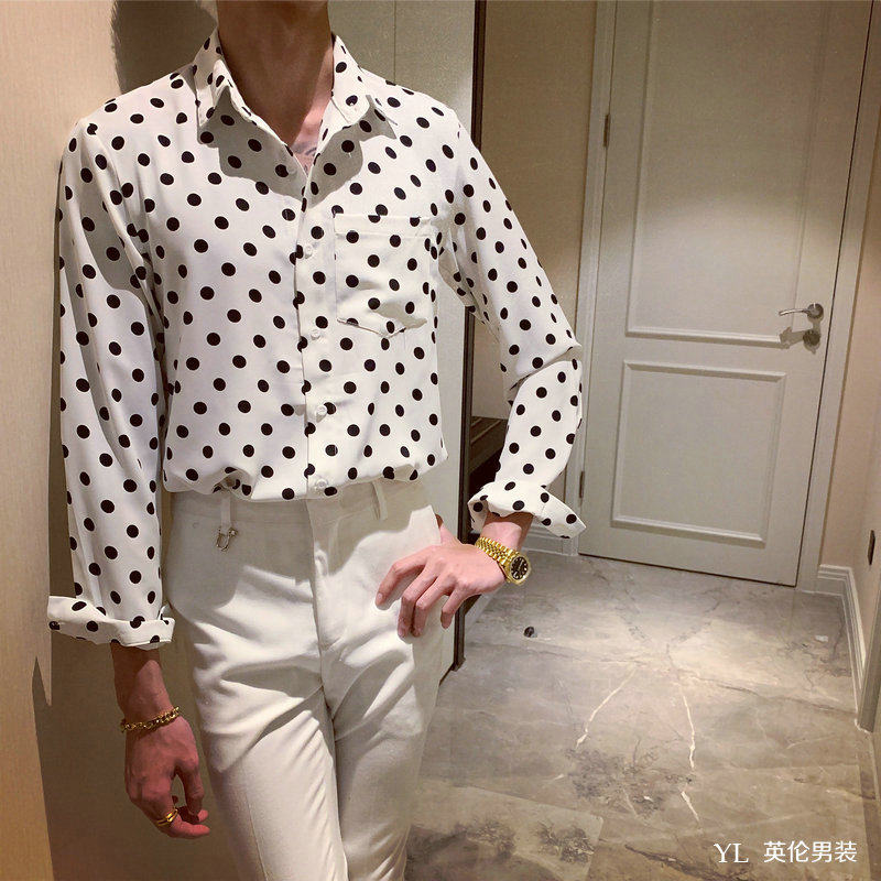 2022 South Korean men's new thin section Pot point long sleeve shirt men's fashion Korean version Ice Silk shirt trending undershirt