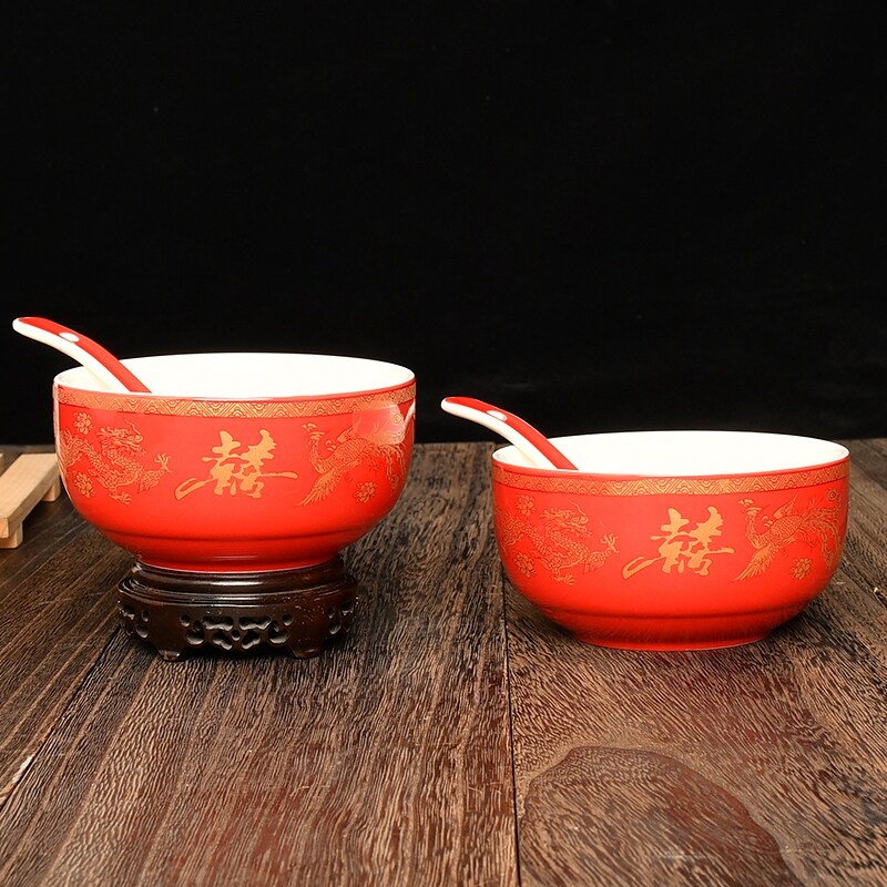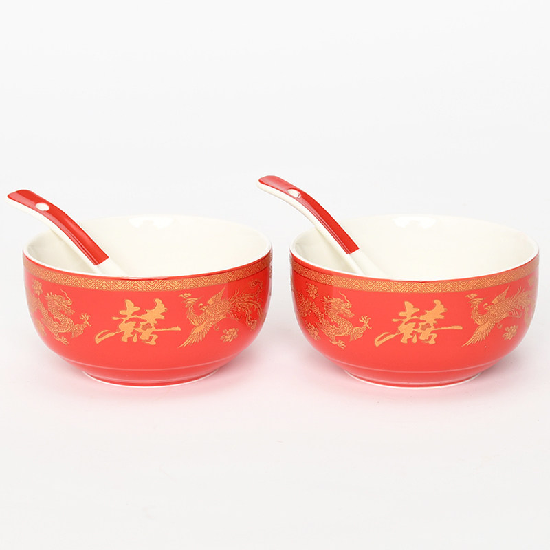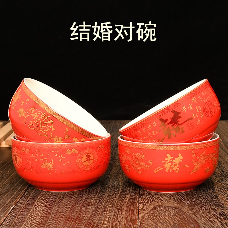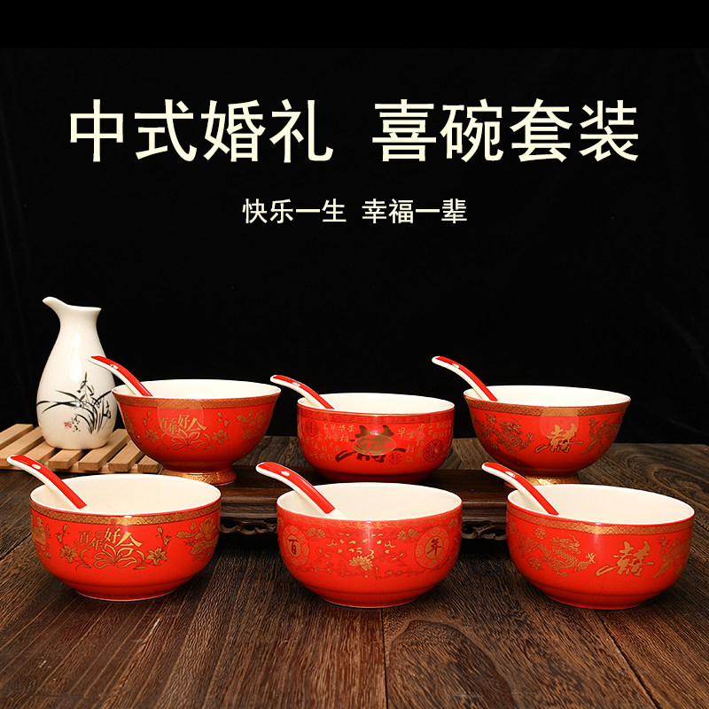 A Red Glaze (dragon and phoenix) pair bowls B red glaze (yuanyang centennial) to bowl D red glaze (happy words) to bowl F red glaze (high-foot mandarin duck centennial) to bowl C red glaze (good fit for hundreds of years) to bowl.