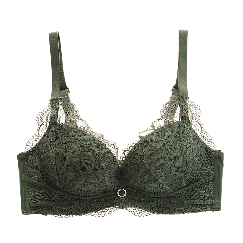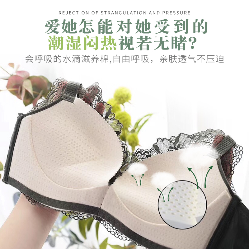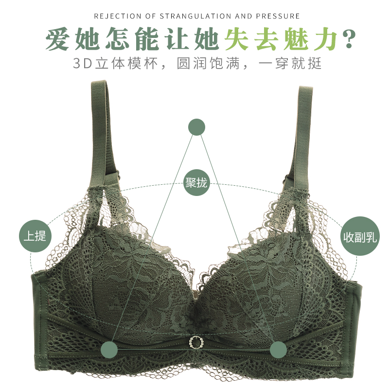 Likalen No Steel Ring Bra Women's Bra Sexy no-scarring small breasts Gathered Thickened Milk Cotton Lace Lingerie Suit