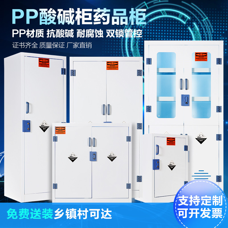 PP Acid Cabinet Laboratory Corrosion Protection Chemical Medicine Cabinet Double Lock Reagent Cabinet Utensil Storage Strong Acid PH PP Cabinet