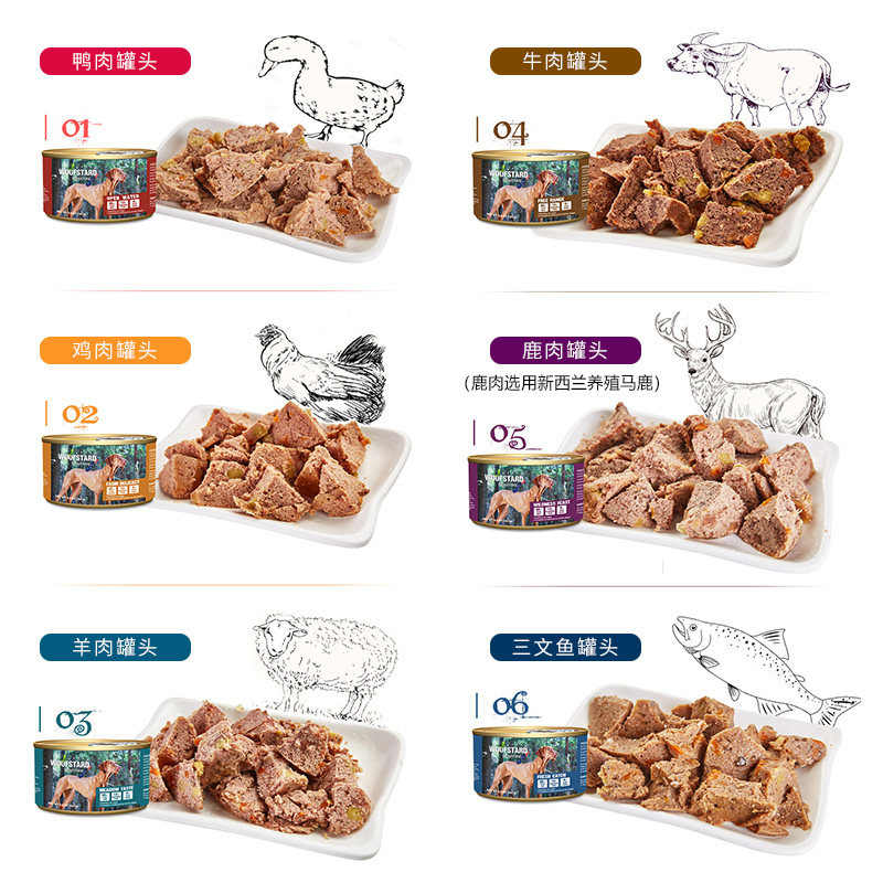 Salmon Beef Lamb Chicken Duck Meat Deer Meat Mixed Taste 6 varieties 4 cans Existing flavors 24 cans (no notes random hair)