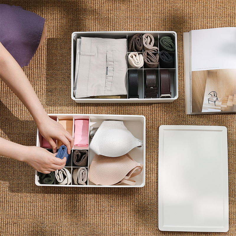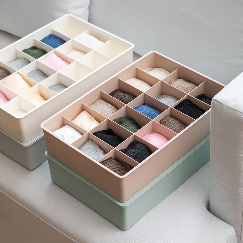 Socks grid storage box Dormitory with lid Underwear underwear bra finishing box Bedroom wardrobe plastic storage box