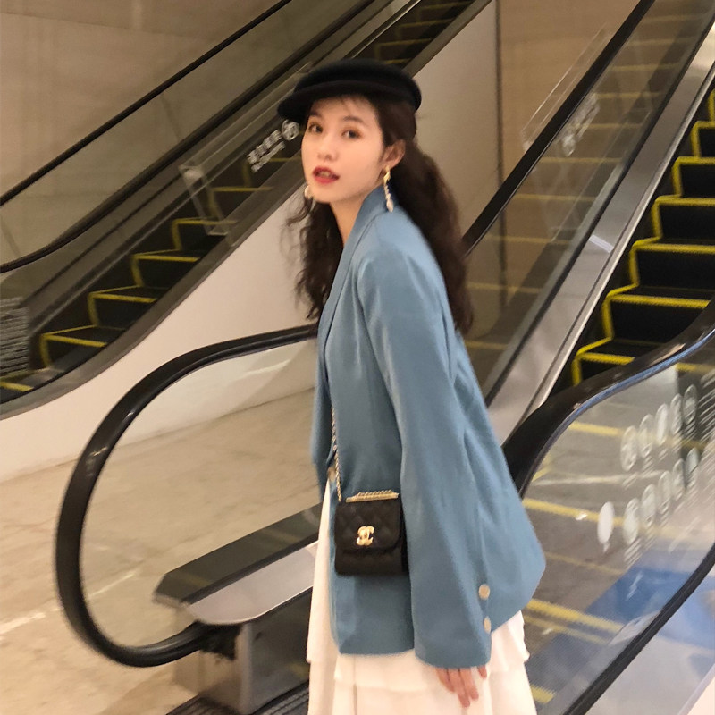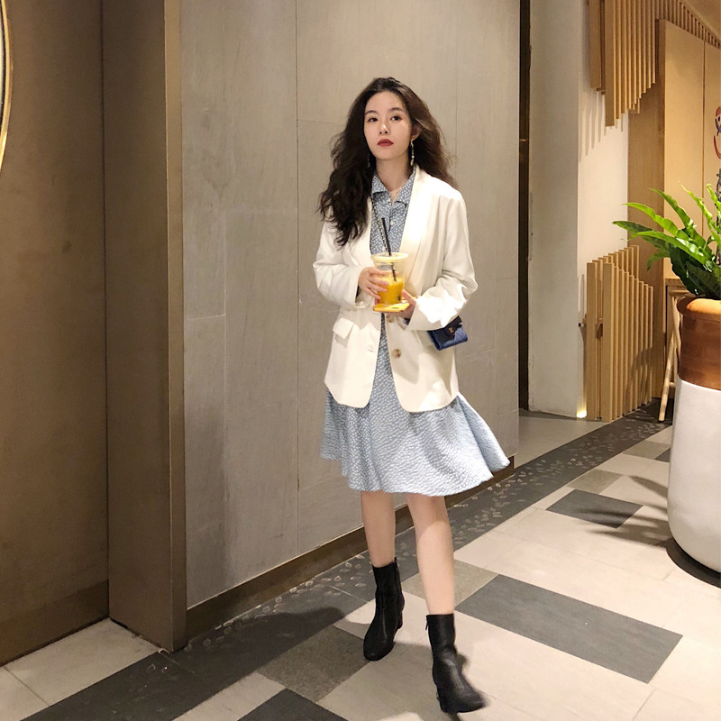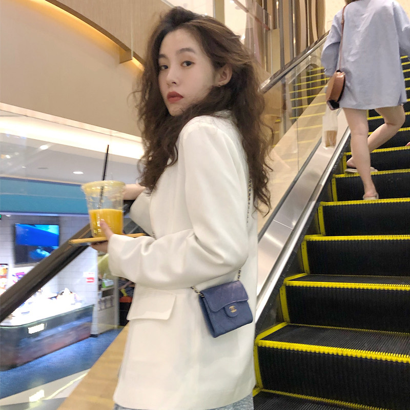 Via Vela casual white satin suit women's spring and Autumn new commuter loose small blazer Han