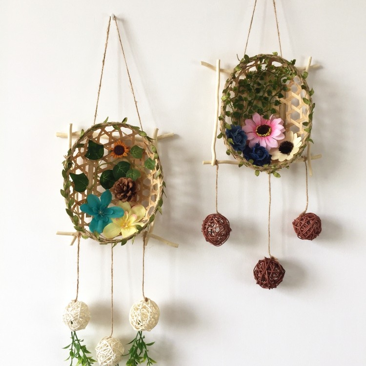Kindergarten classroom ring creation pastoral style decorative material supplies handmade creative diy oval bamboo woven flower and grass charm
