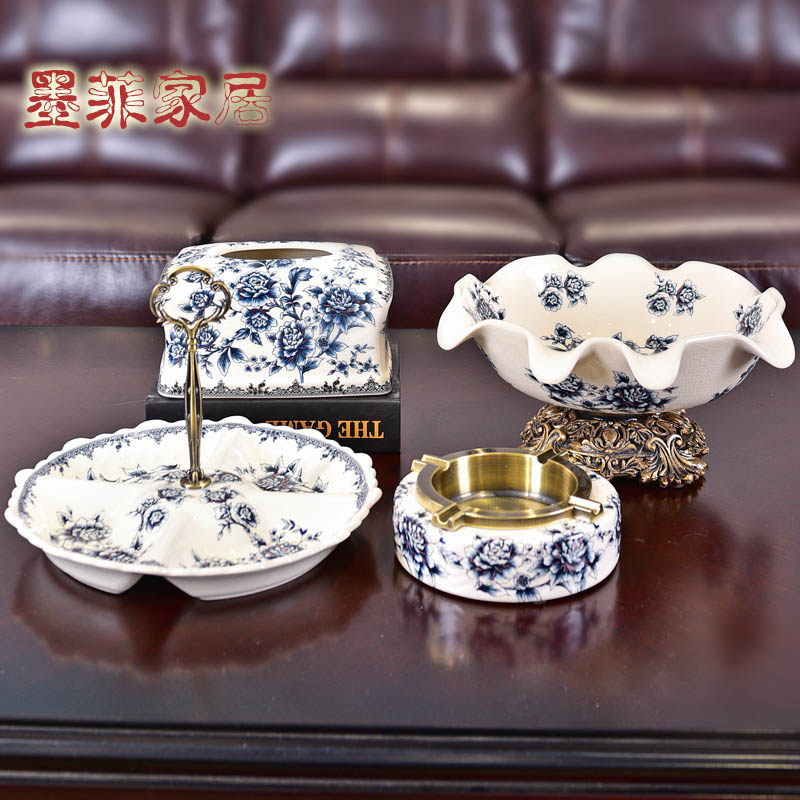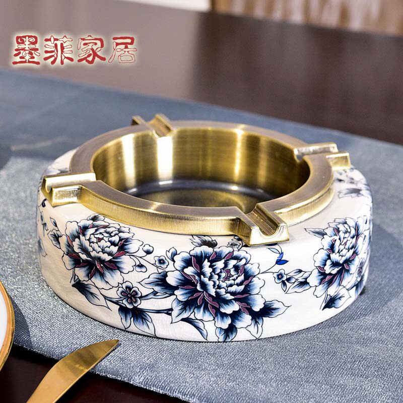 New Chinese light extravaganza Porcelain Ceramic ceramic Ashtray Pendulum Pieces Home Living Room Office Personality Creative Retro Cigarette Cylinders