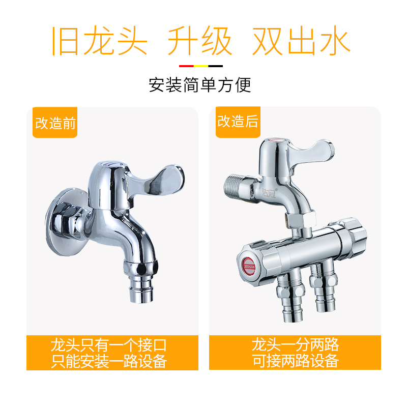 Washing machine tap diverter 10% Two-adapter three-way angle valve double head double with one-in-two out water splitting valve