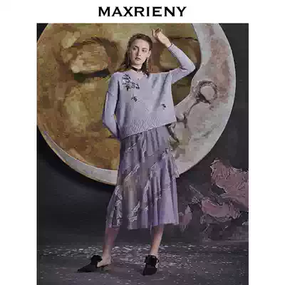 MAXRIENY season new vintage V-neck pullover wool knitted top long sleeve sweater