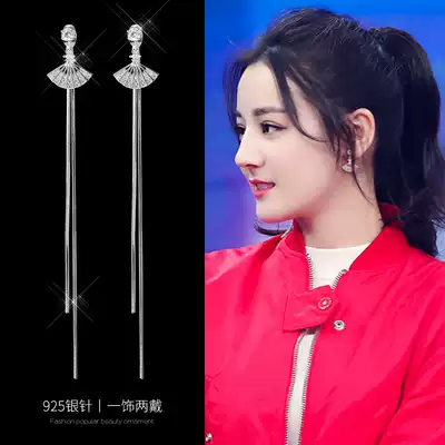 Fan tassel earrings female long version of temperament ear needle female sterling silver simple cold wind earrings personality earrings without earrings