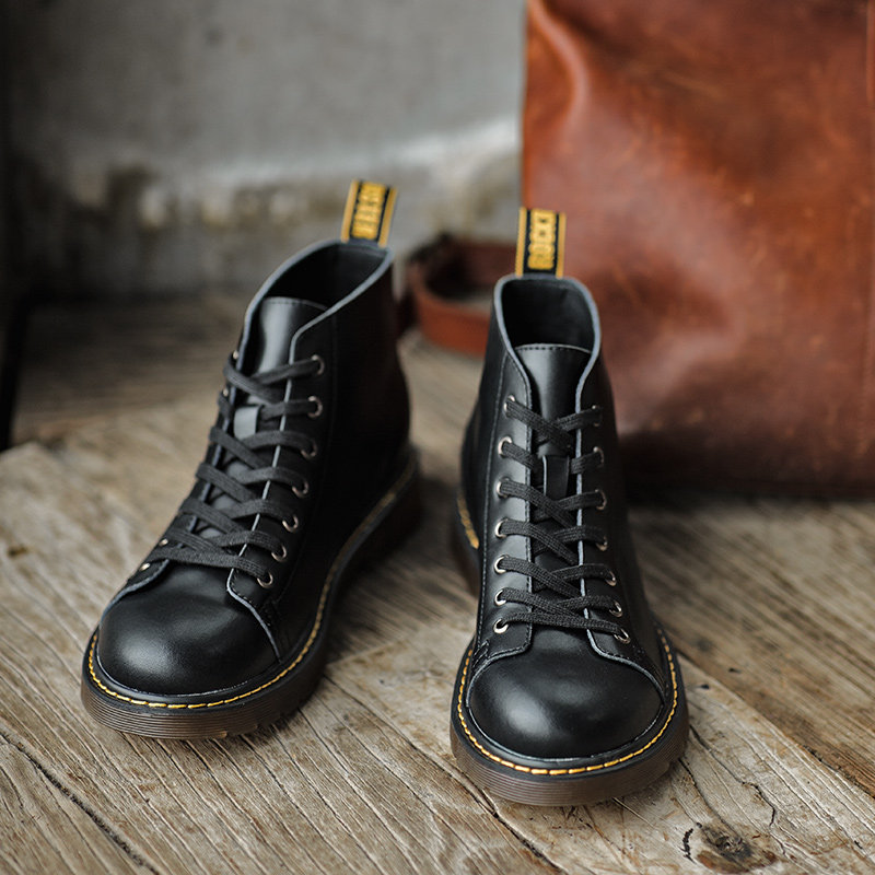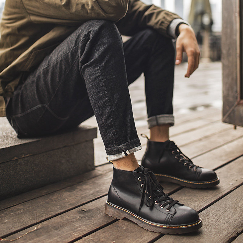 Martin boots male high cylinder Inlan wind leather shoes midcylinder short boots Footwear Boots Men Shoes Winter Gush Waterproof Black Leather Boots