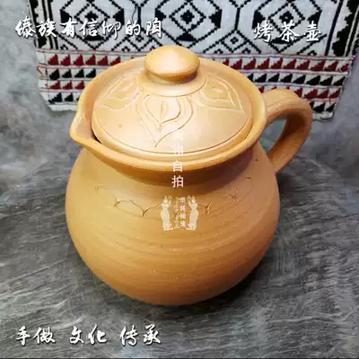 Dai pottery roasted teapot kung fu tea set coarse pottery Xishuangbanna slow wheel ancient pottery Dai traditional hand-made firewood burning