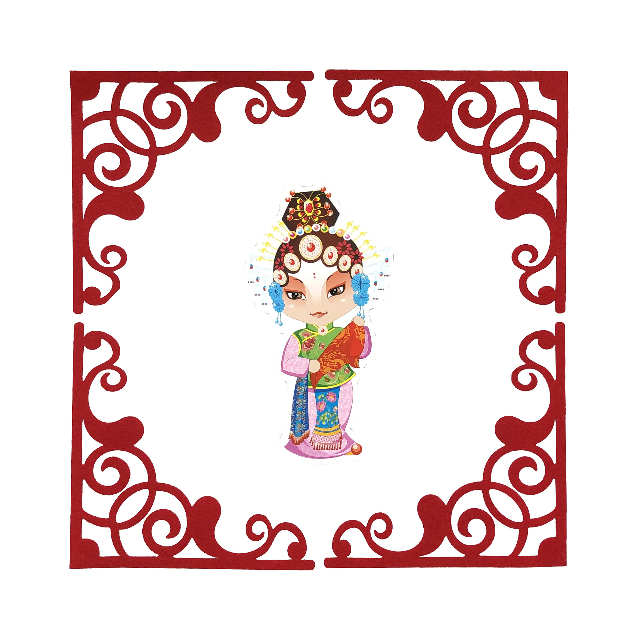 Kindergarten school wall white clouds arrangement Chinese style non-woven blue and white porcelain diagonal pane border three-dimensional wall stickers