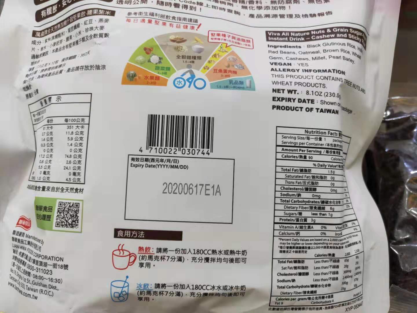 Spot All-Union Procurement Long live tag All natural no added sugar Cashew Purple Rice Ash Valley Nuts Drink 230 gr 10 Package in