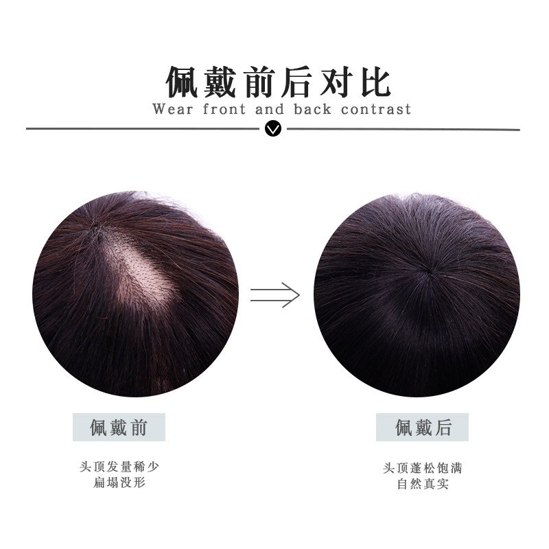 Full True Fat Fake Hair piece over the top of the head Hair Patch Without Mark Fluffy White Hair Mini head Tonic Hair-Taobao