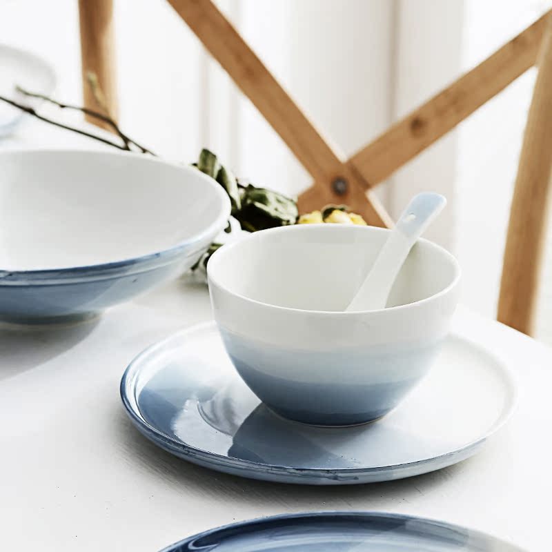 Ceramic Home Bowls Dish Spoon Suit Creative Minima Nordic Ceramic Couple Bowls Chopsticks Cutlery Cutlery Breakfast Dish