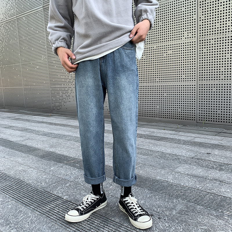 Broadlegged Jeans Male loose student Han version Straight pants BF Wind trendy Old Daddy pants Spring Summer 90% Pants Men