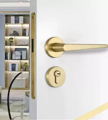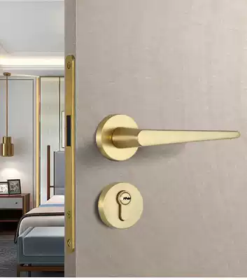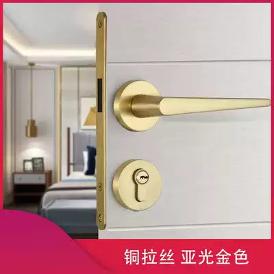 Indoor bedroom magnetic mute matt gold copper color brushed household simple light luxury two-piece suitable for TATA wooden door lock