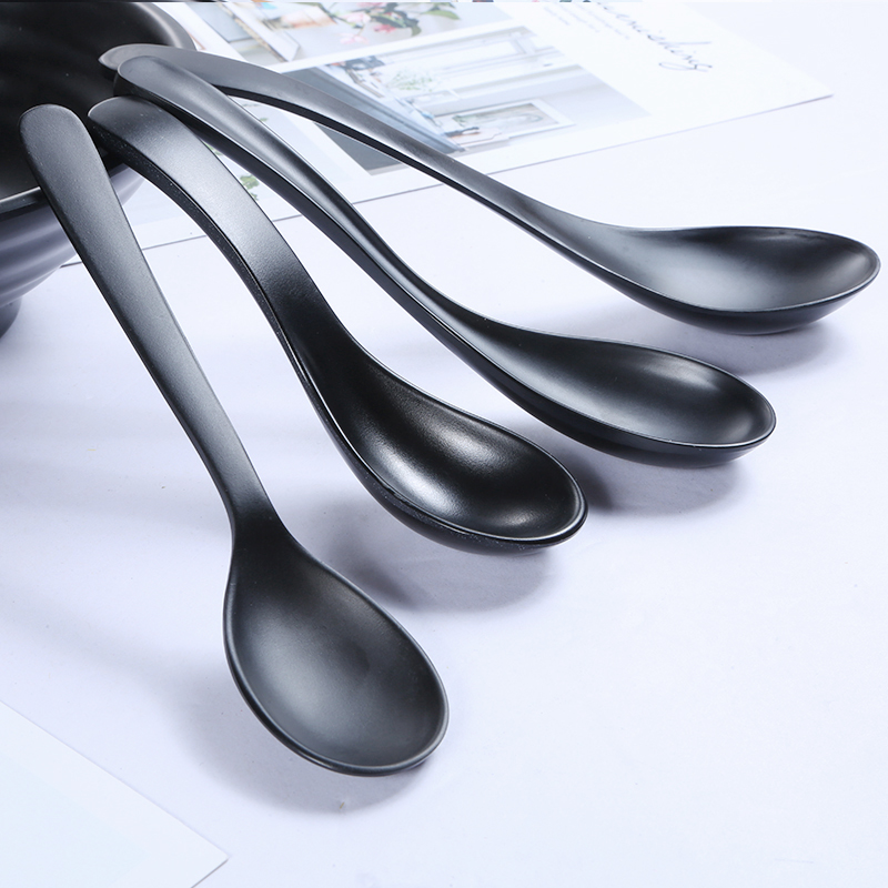 Melamine long-handled soup spoon black imitation porcelain tableware short-handled plastic spoon commercial Western food porridge rice spoon Korean style 10 packs