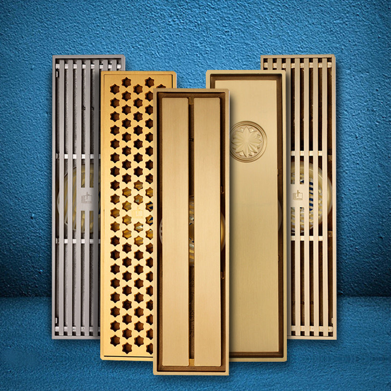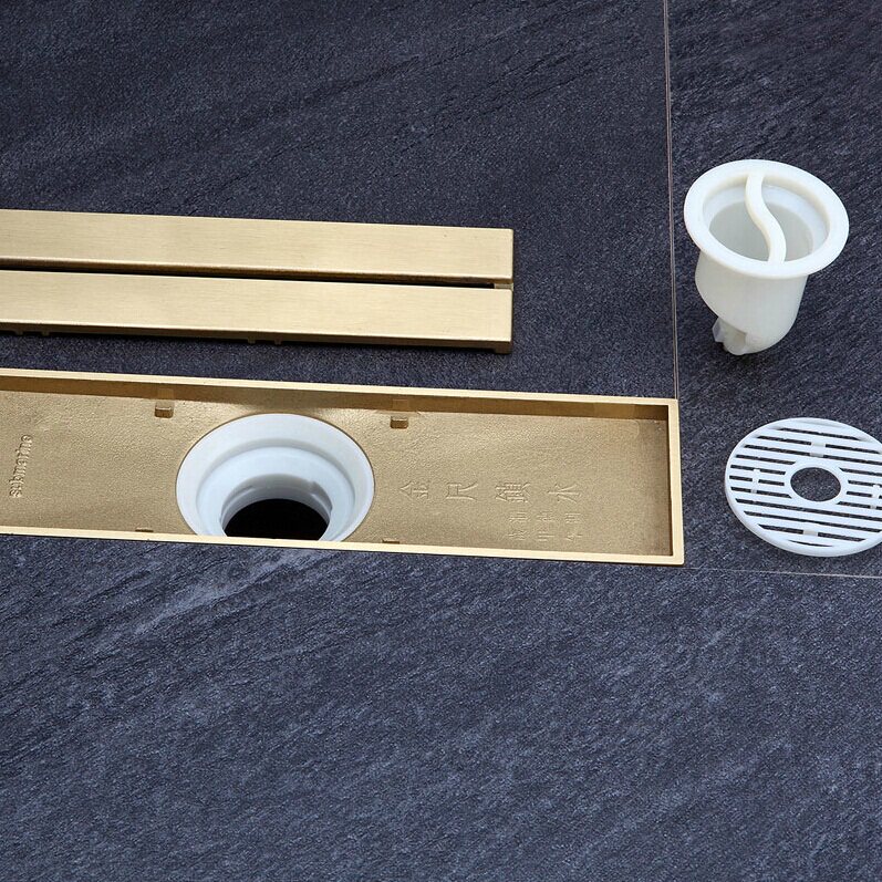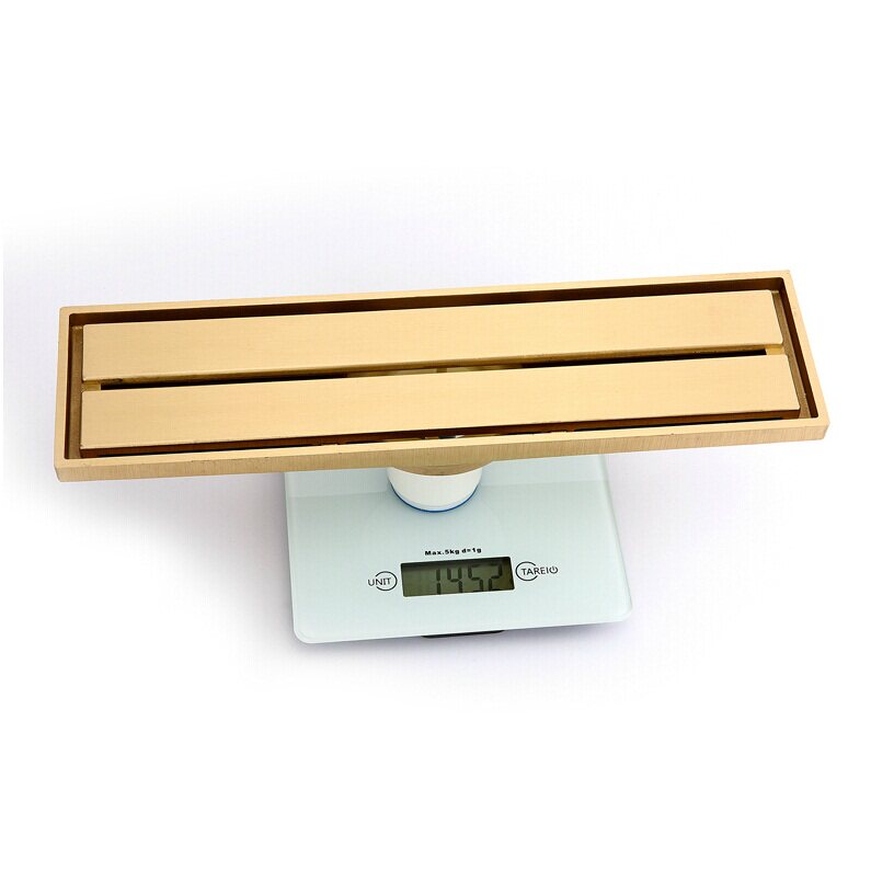 Submarine nouveau riche gold rectangular shower deodorant floor drain custom extended large displacement long strip gold all copper floor drain