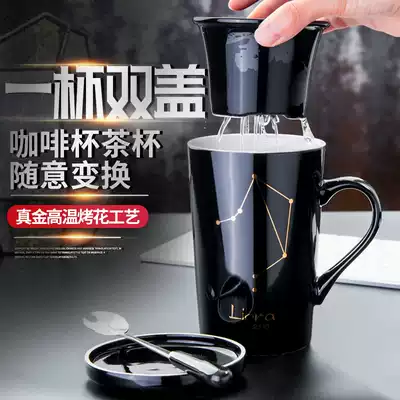 Personality trend water Cup Nordic creative ceramic mug office tea cup filter coffee cup with lid spoon