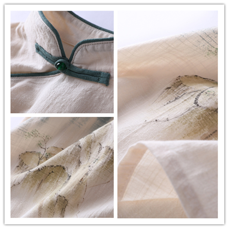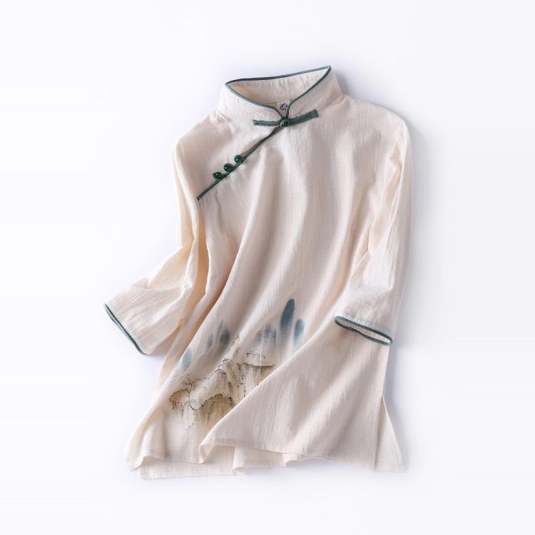 Retro Republic of China Wind women clothing linen qipao Chinese style blouses Chinese wind original spring and summer clothes hand-painted fashion literature and art