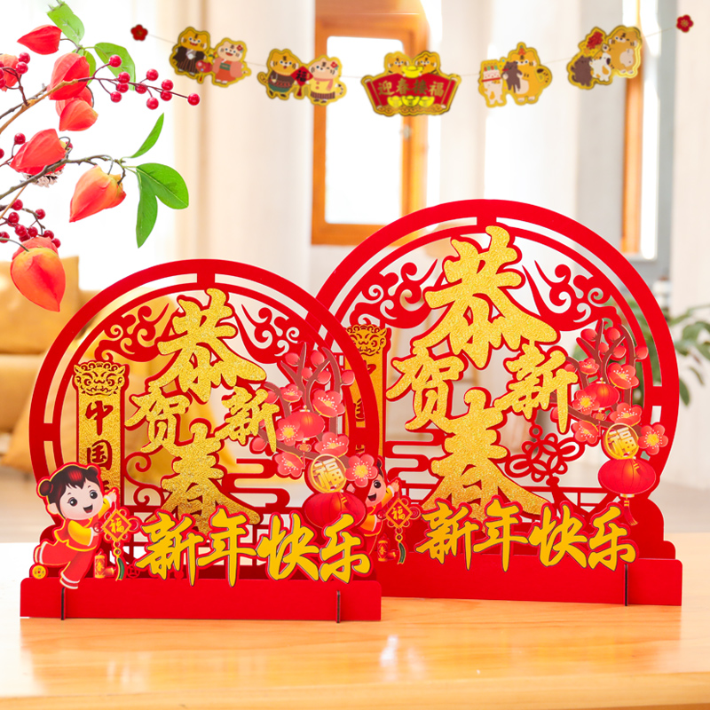 Tiger year new house swing piece Spring Festival wooden swing piece decoration shop window Heqing Lantern Festival New Year decorations shopping mall desktop swing table