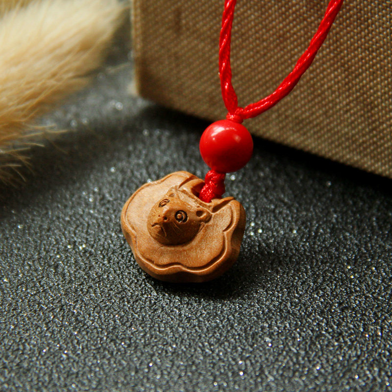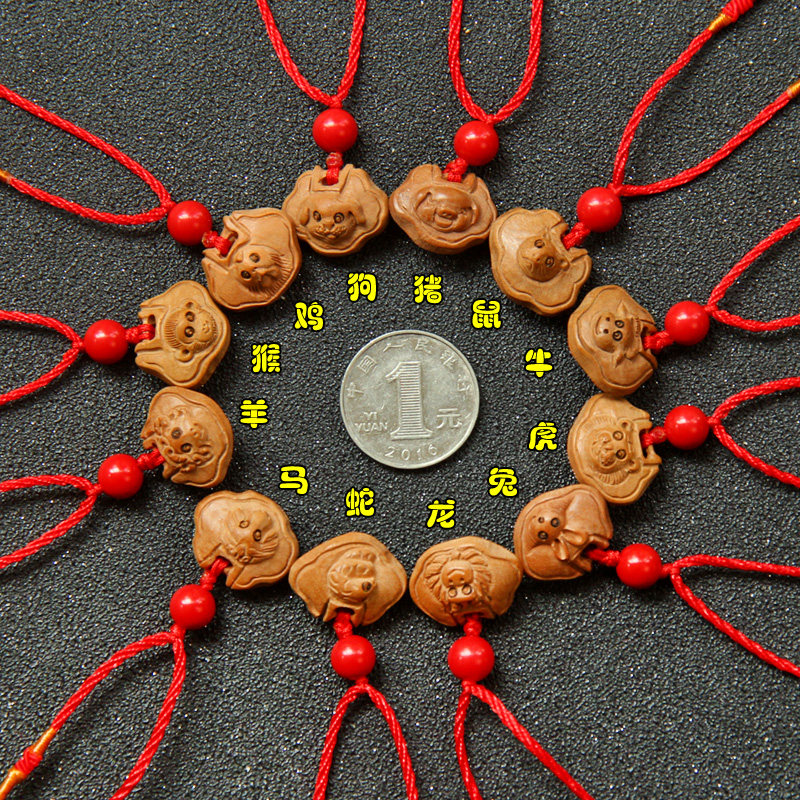 Peach wood duozodiac pendant amulet male and female baby boy baby boy red rope necklace with hanging neck and safety