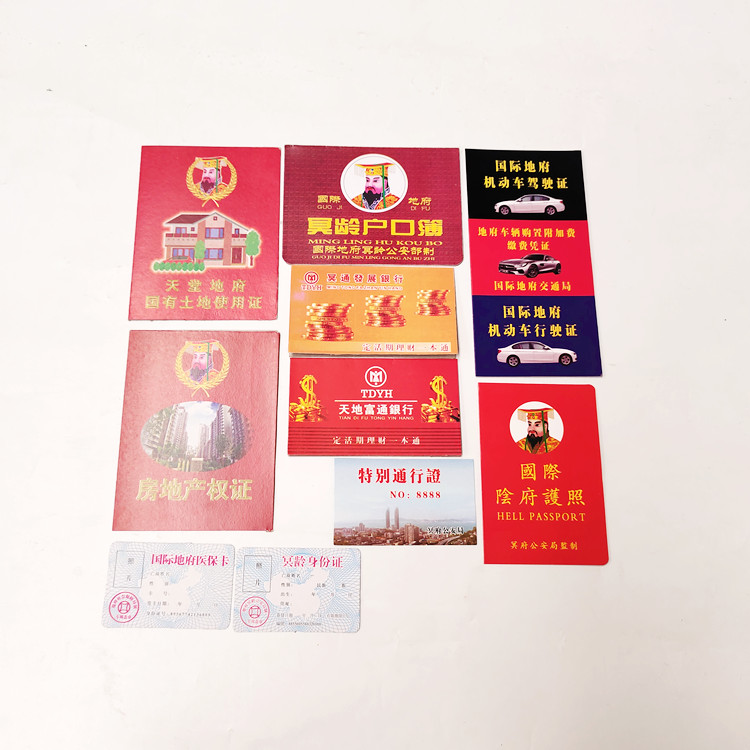 Sacrificial supplies certificate full set of account, real estate certificate, land certificate, passbook, driver's license, a full set of ghost coins, paper money