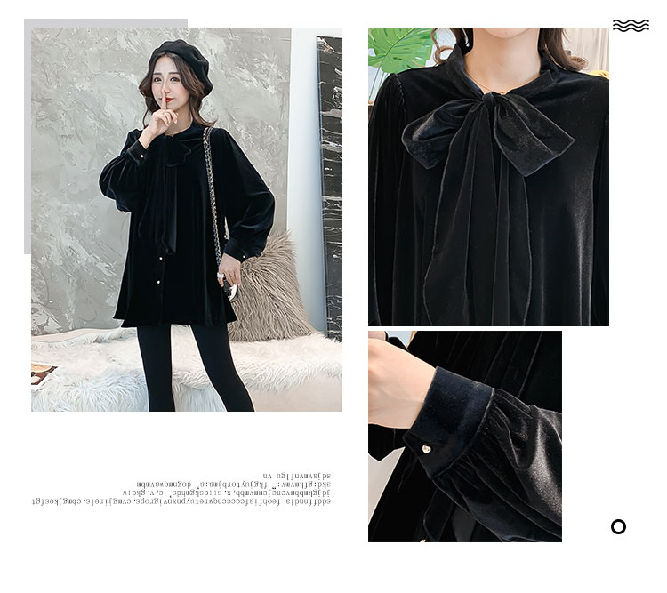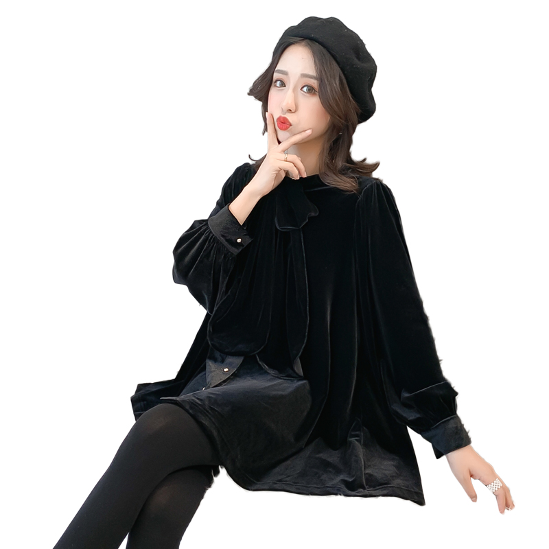 Pregnant women autumn new dress loose large size butterfly collar shirt dress fashion wild lantern sleeve top winter