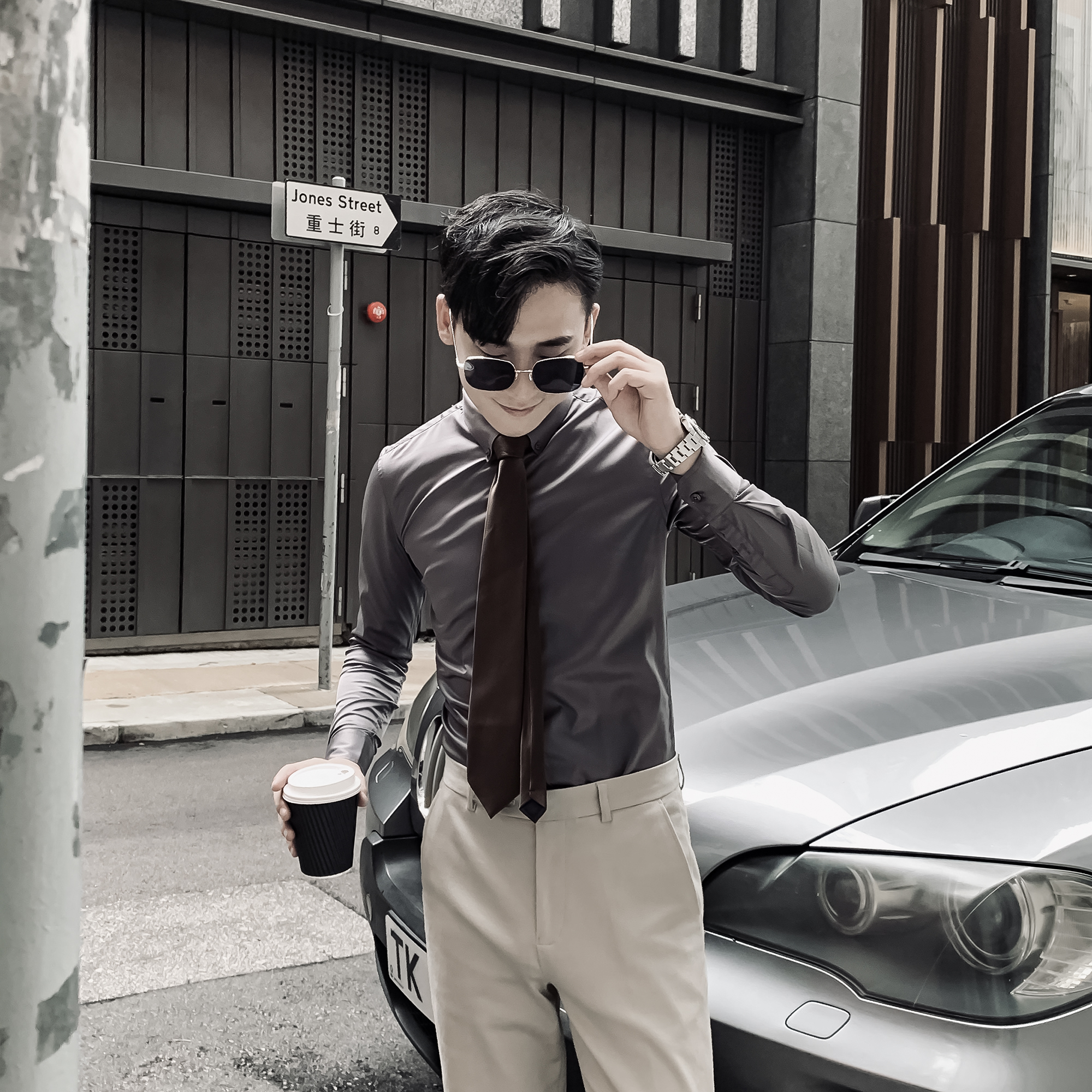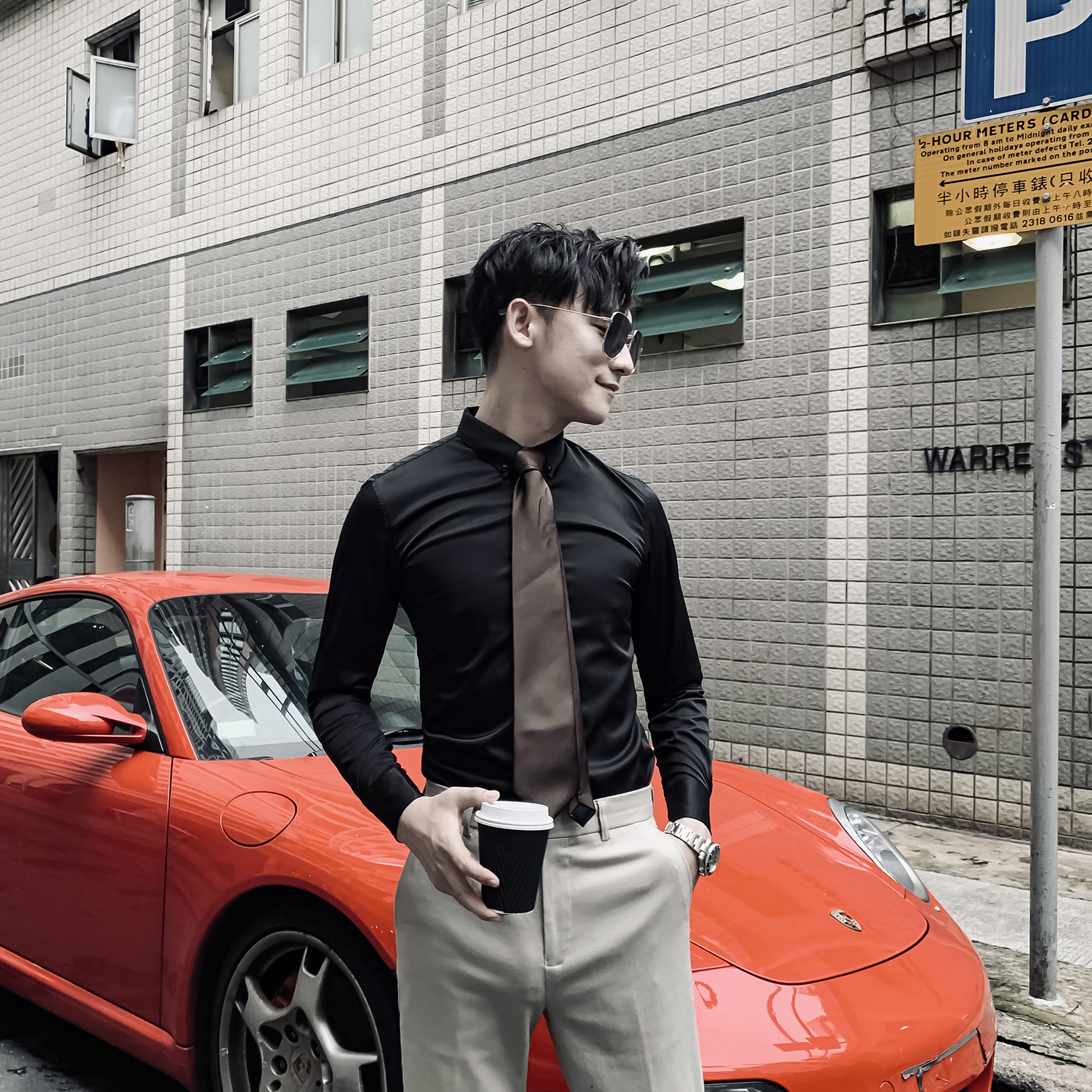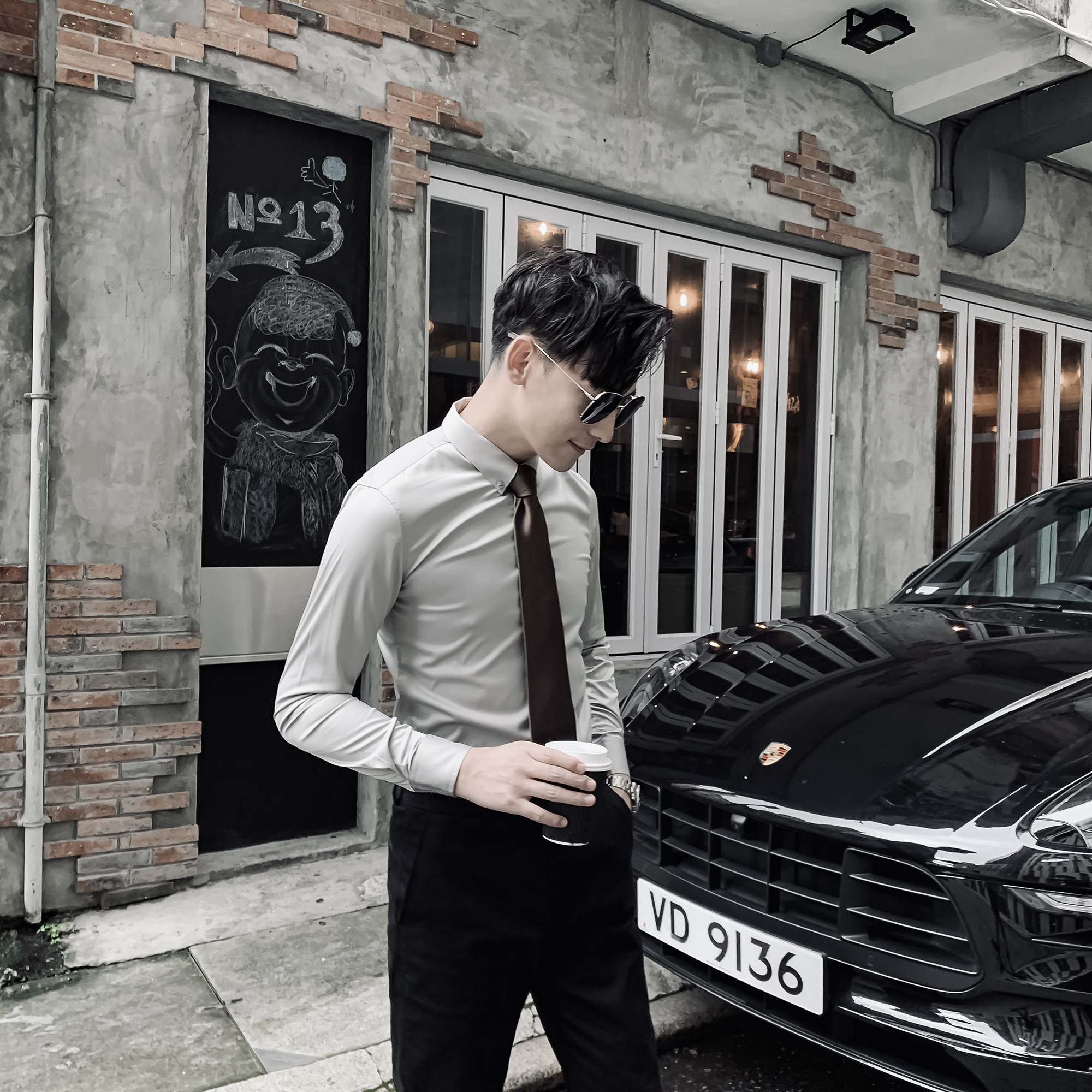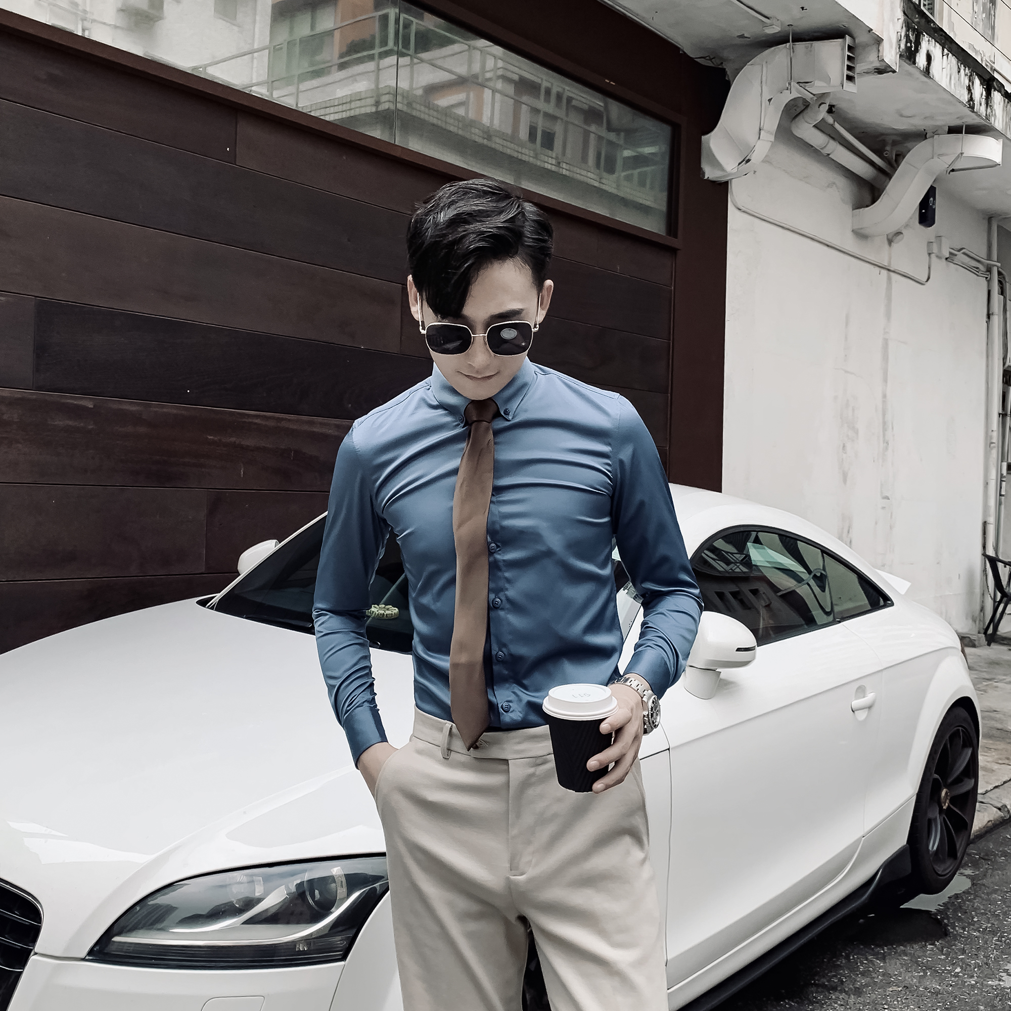 (DAIO MENS)Korean solid color shirt men's long-sleeved tide British casual all-match slim-fit non-ironing shirt tide