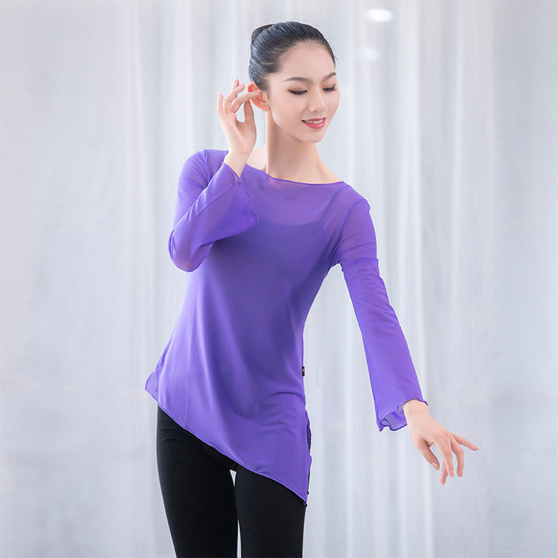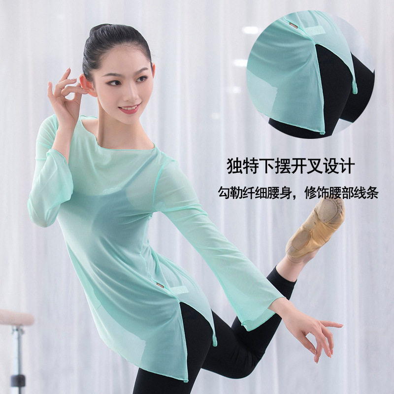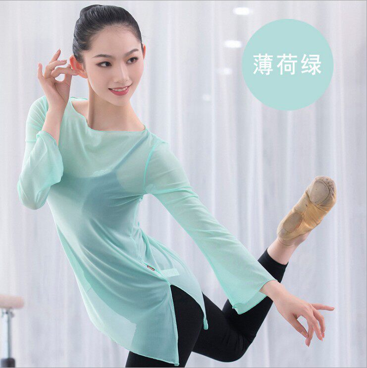 Classical Dance Practice Sweatshirt Elastic Mesh Yarn Jacket Dance Suit Female Adult Large Size Ballet Dancer Body Training Suit