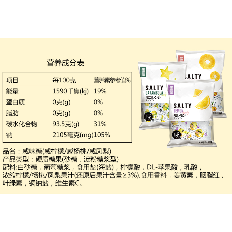 Salty pineapple taste sugar 80g about 30 salty lemon taste sugar 80g about 30 salted poplar notes of sugar 80g about 30