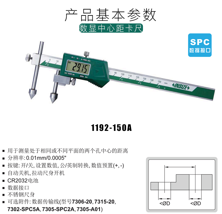 British display insize digital display center distance caliper 1192-150A 10-150-200-300mm hole distance measurement
