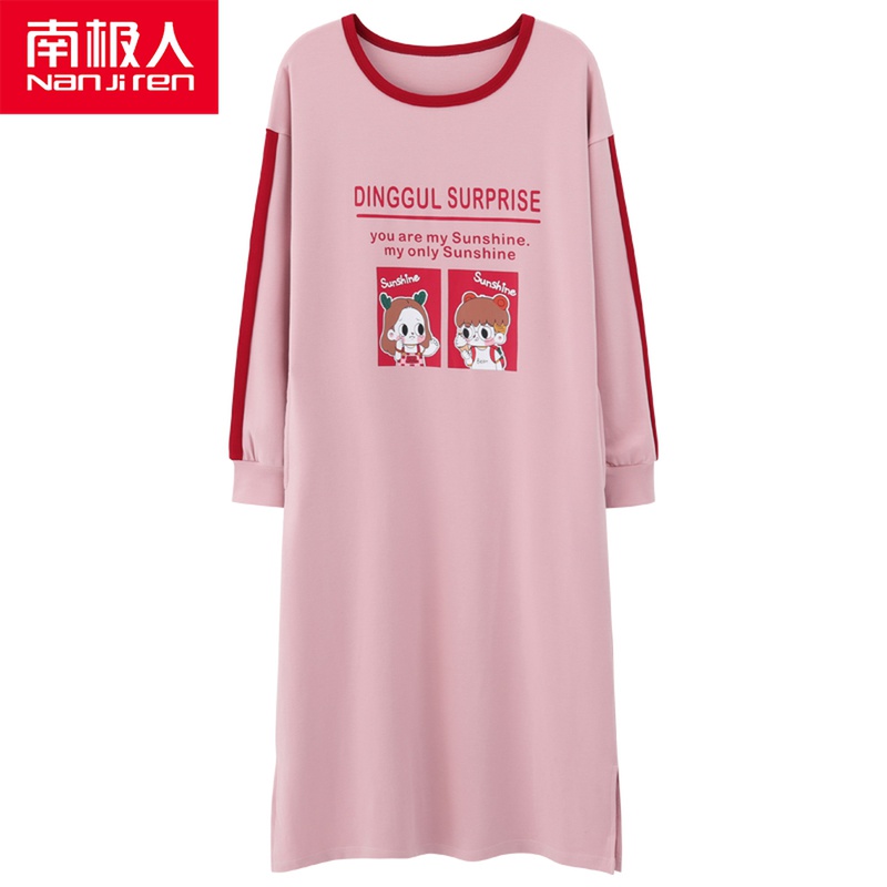 Spring Autumn Season Long Sleeves Pure Cotton Pyjamas Woman Loose Medium Long Version Pyjamas Woman Autumn Full Cotton Extractable Wearing Home Dress Cute Dress