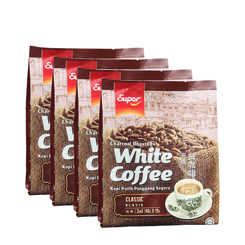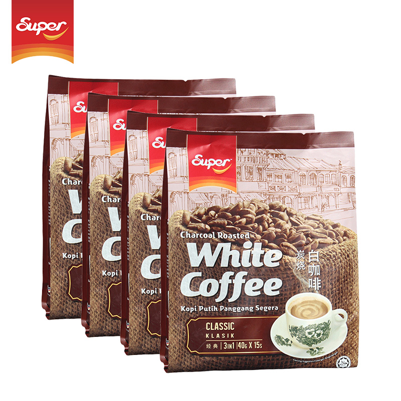 Malaysian Imports Supercharcoal Burning White Coffee Original Taste Three-in-one Instant Coffee Powder 600 gr * 4 bags