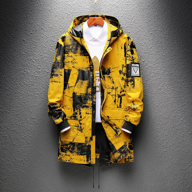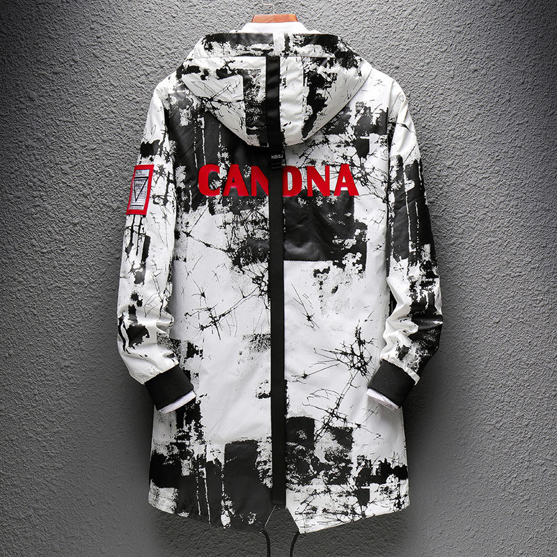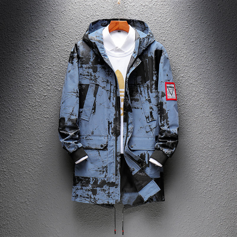 Men's windbreaker mid-length version spring, autumn and winter new Korean version of the trendy street coat plus velvet thickened long coat winter clothing
