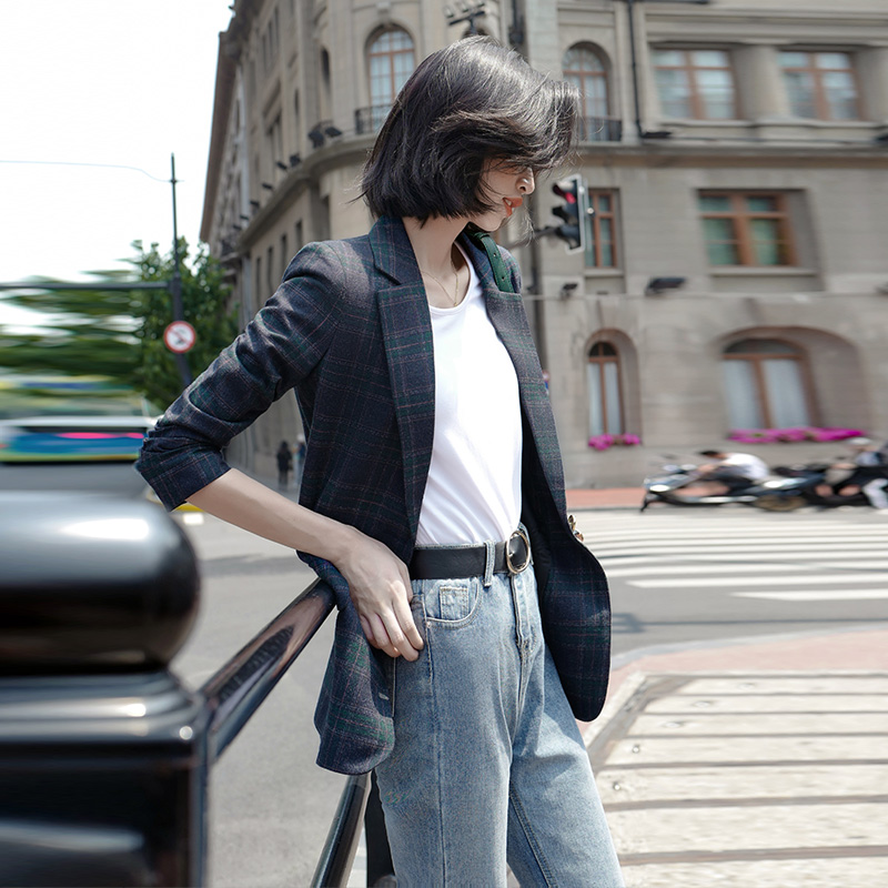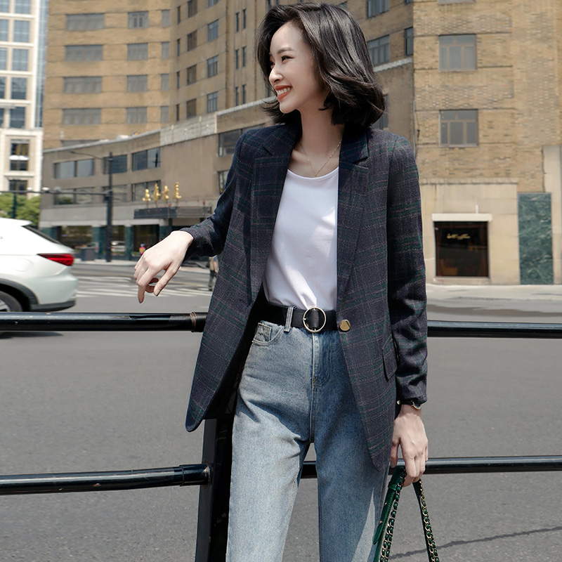 Plaid Suit Jacket Woman Spring Autumn Fashion New Inlun Wind Retro Korean Version Casual Loose Little West Suit Little Subs
