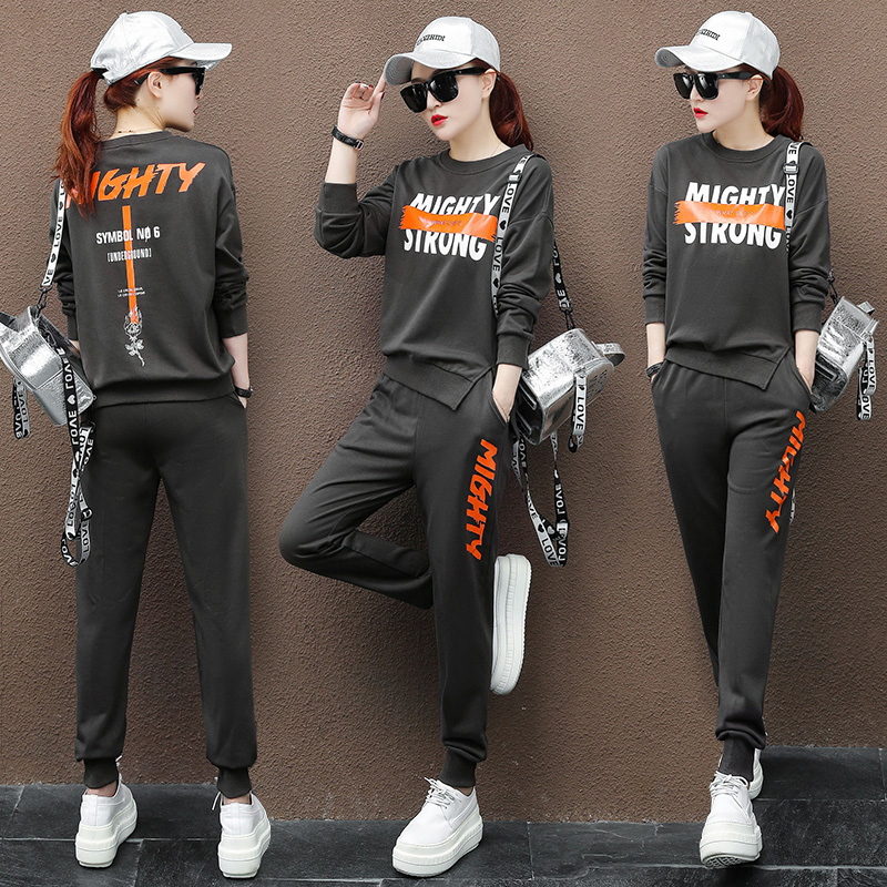 Brand autumn women's sports suits women's red fashion trendy brand large size fat mm hip-hop foreign style casual cotton