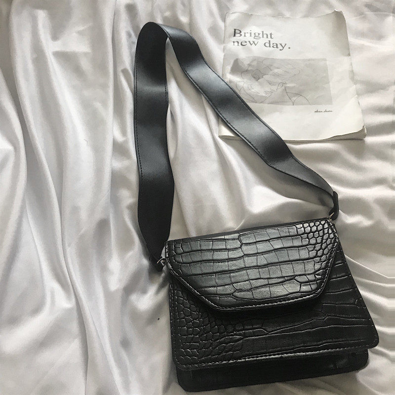 Korean vintage bag ins super fire messenger honey bouncy bag wide shoulder strap wild oblique cross bag single shoulder small square bag female