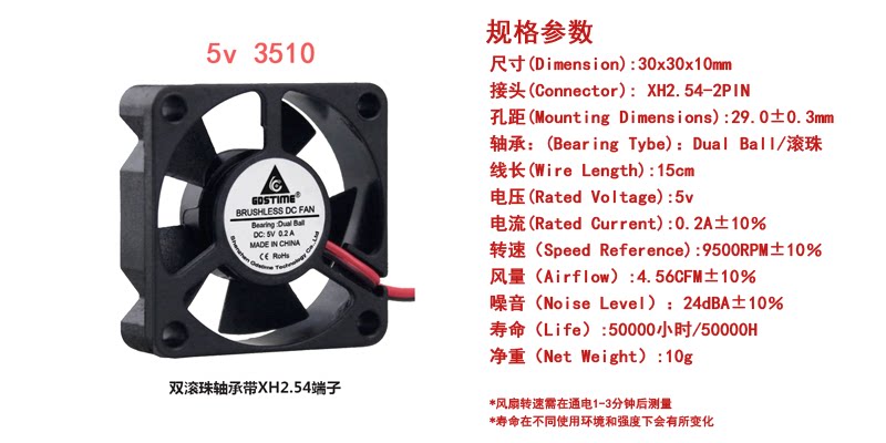 Time Tai brand new DC5v 35x35x10 35MM 3 5CM cm Ball bearing durable brushless heat dissipation small fan
